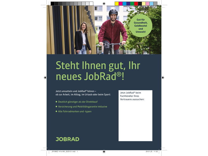 - JobRad®-Flyer mit deinen Kontaktdaten und dem Logo deines Unternehmens